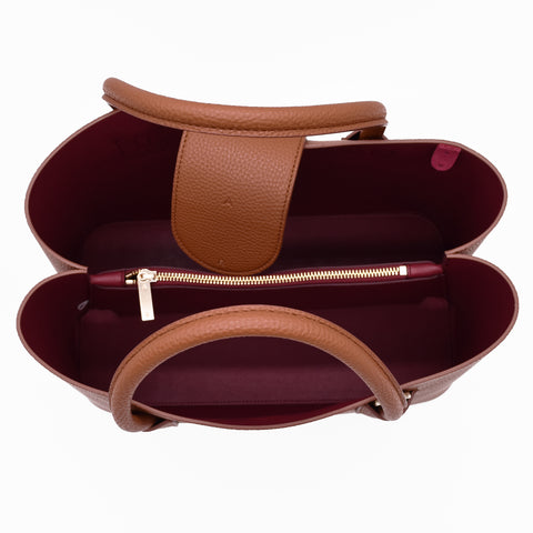 Cher Tote got a 2020 upgrade. Meet the Cher Tote 20. The same look you all know and love, now with chic flap closure. Engraved with our initials AR, the flap will keep your items more secure and looking elegant as ever.